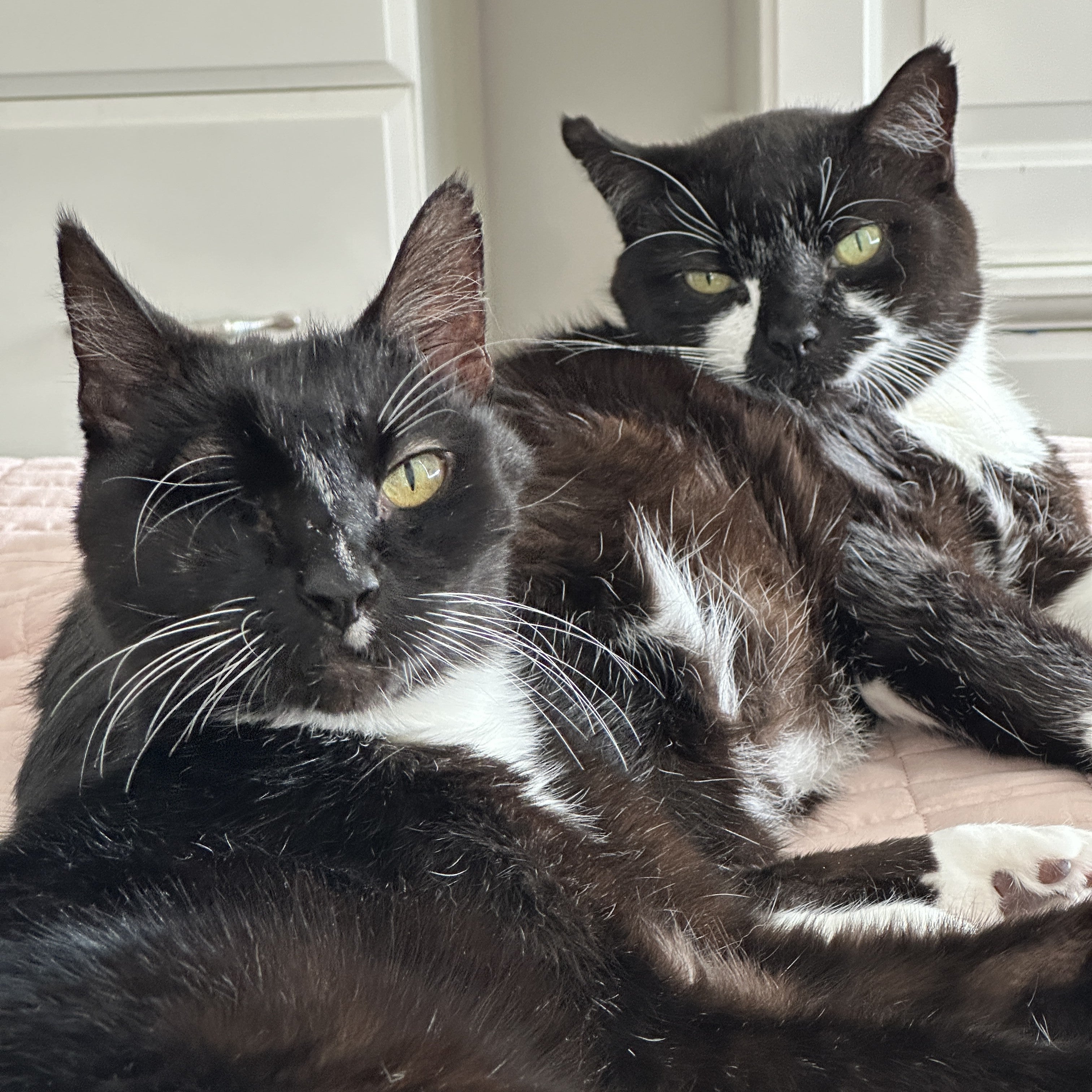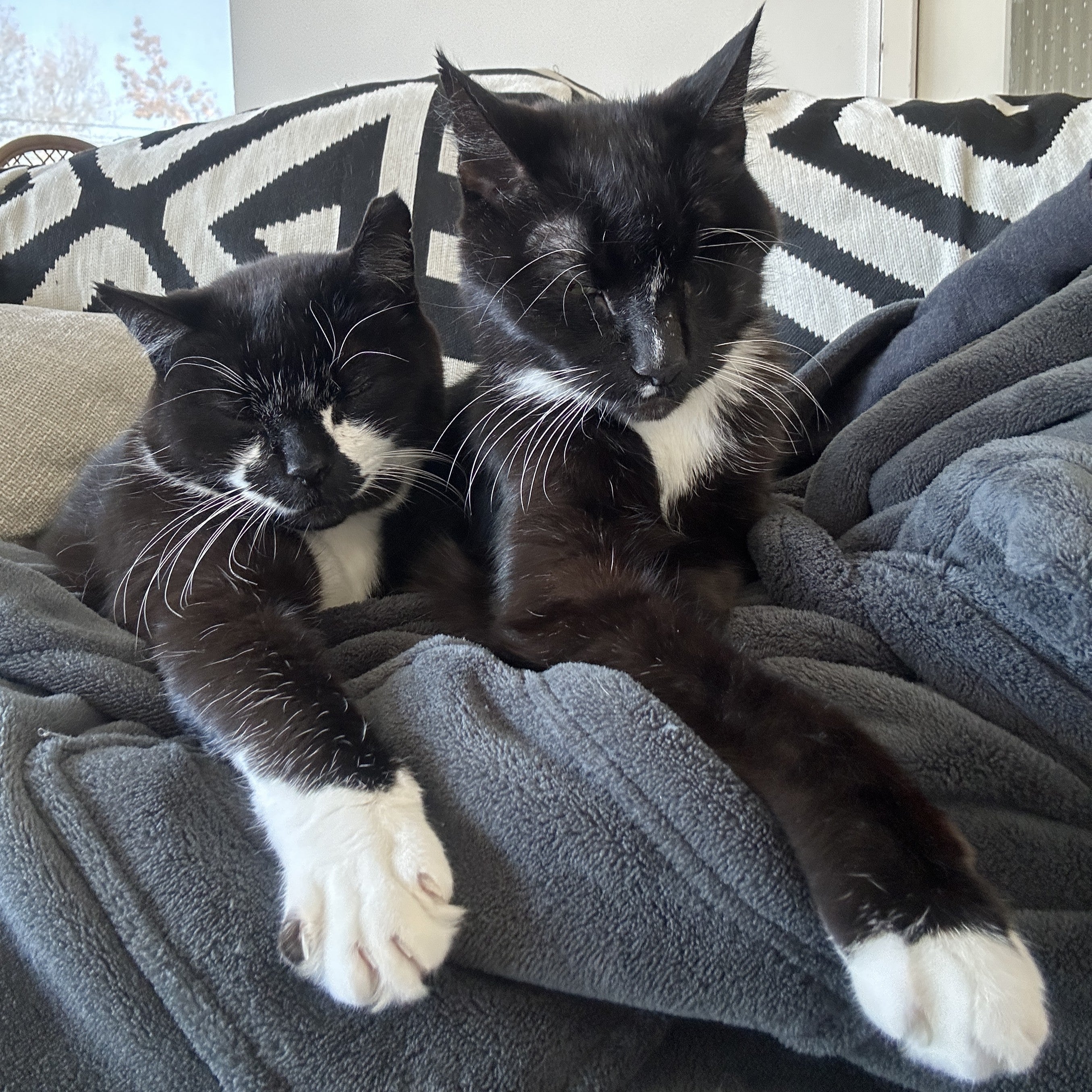 Tom (left) keeping watch, Billy (right) soaking in the love