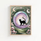 A black cat struts through a dreamscape of moons, stars and glowing mushrooms. With rich greens, soft purples and cosmic energy, this enchanting print is perfect for bedrooms, altars or spaces that crave a little moon magic.