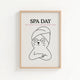 Don’t speak until the steam clears. A cucumber-eyed kitty radiates bath-time luxury in this fun spa-themed cat print.